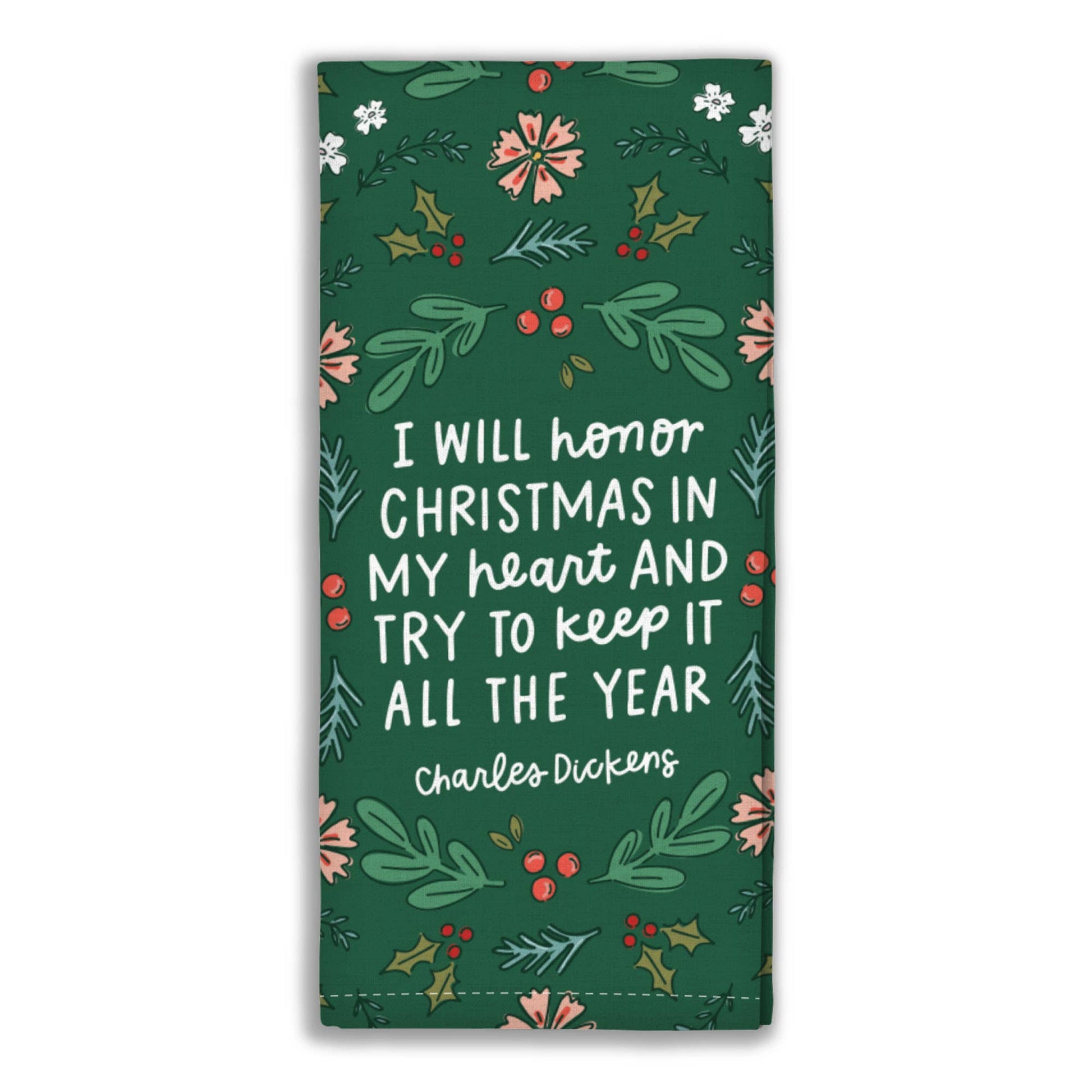 Infuse your kitchen with holiday cheer with our Christmas In My Heart Tea Towel! Featuring a hand-illustrated pattern of festive holly and winter florals, this towel adds a merry touch to any space. With the timeless words of Charles Dickens, 'I will honor Christmas in my heart and try to keep it all the year', it's a joyful reminder to embrace the spirit of the season every day.