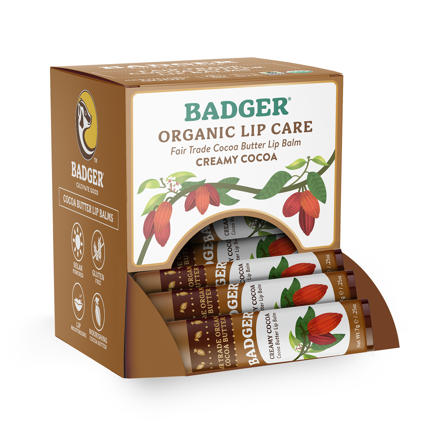 A creamy, dreamy, chocolatey favorite. Fair Trade cocoa butter adds a subtle chocolate aroma to an antioxidant-rich base of extra virgin olive oil and beeswax, all in an oversized stick brimming with natural goodness.