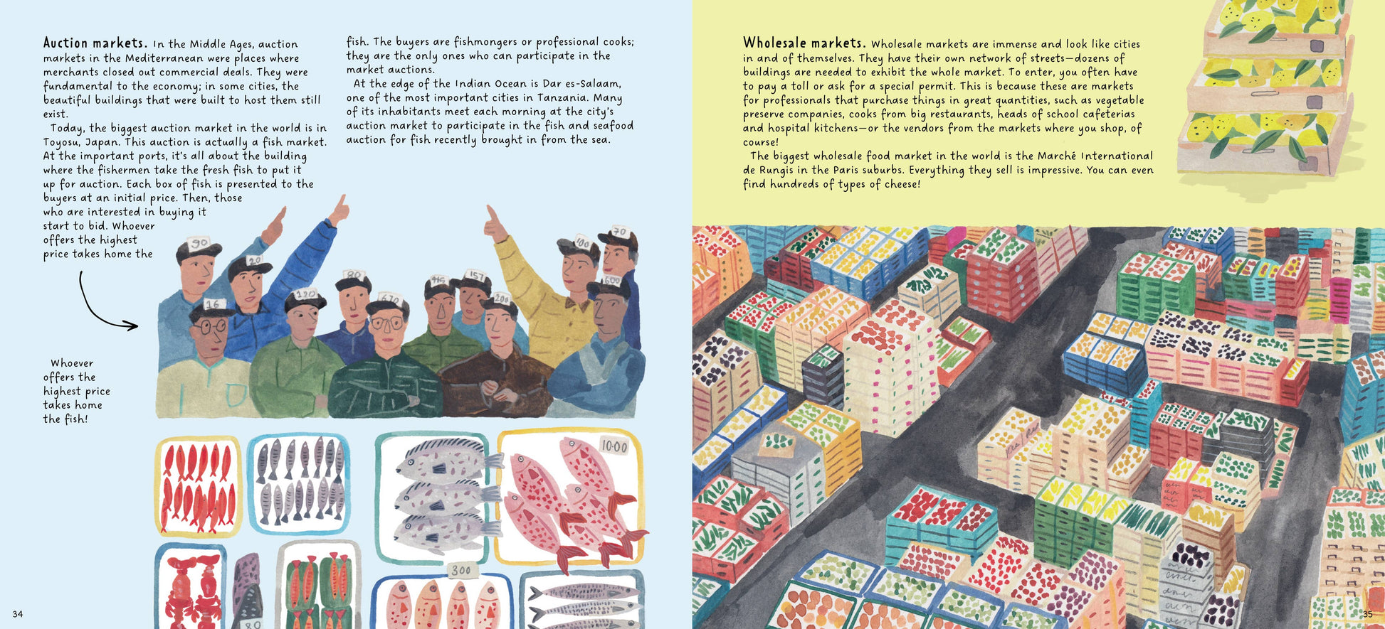 Markets is a gorgeously illustrated exploration of what has been the heart of civilization for thousands of years. Find out how markets got started, where food comes from, how people pay, and other fascinating treasures hidden among the stalls. Along the way, visit some of earth's most famous markets and bazaars in Asia, Africa, Europe, and beyond, from the indoor to the outdoor to the floating (and all included on a convenient map at the back)!