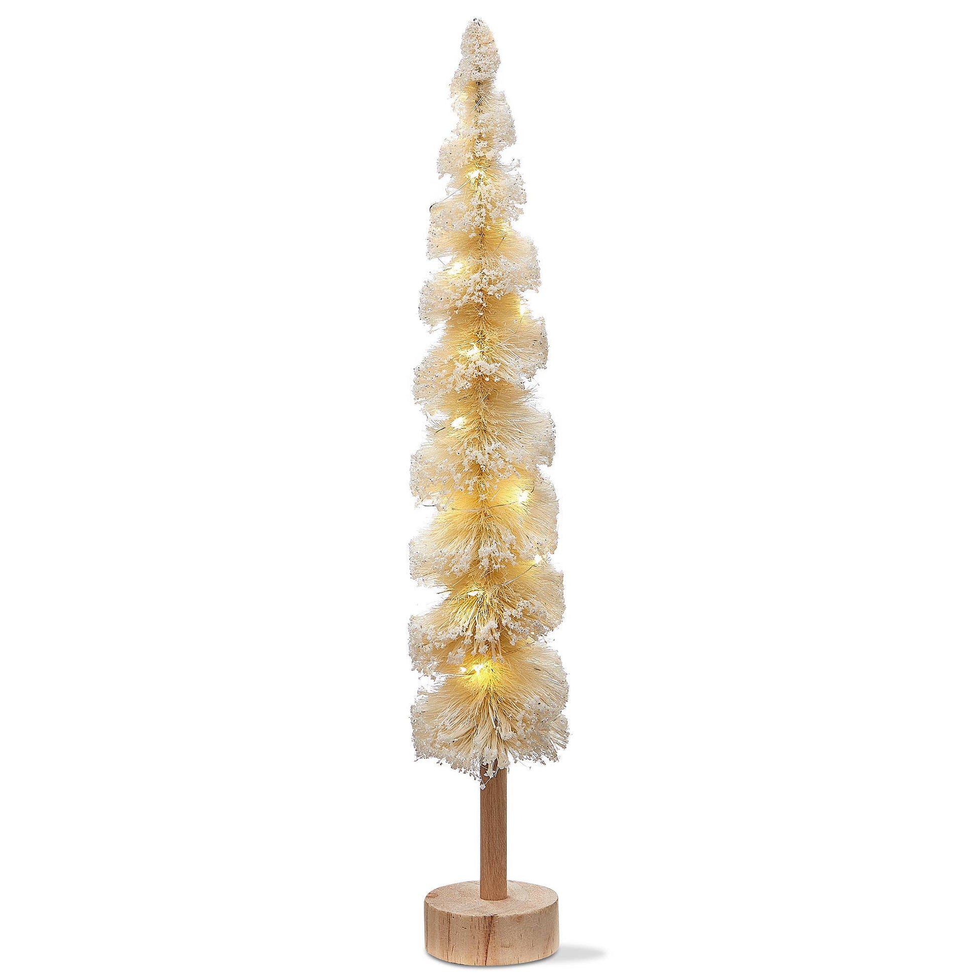 Set the scene. Bottle brush trees are all the rage and the perfect accents to any display for instant holiday charm. This spiral sisal tree features a snow tipped glitter finish. Mix and match with varying sizes of holiday tree decor from tag for a dramatic effect. On/off switch.2 Aaa batteries, not included.